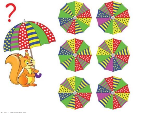 U ovoj mozgalici je zadatak pronaći kišobran koji veverica drži među šest ponuđenih.