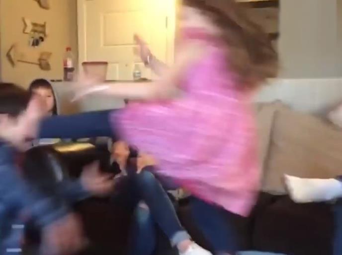 Igra brata i sestre bila je toliko zabavna da su zamolili roditelje da ih snime kako se bore. Razdvojili su se, zaleteli, a onda je devojčica neočekivano na bratu upotrebila potez ravan kung fu majstora.