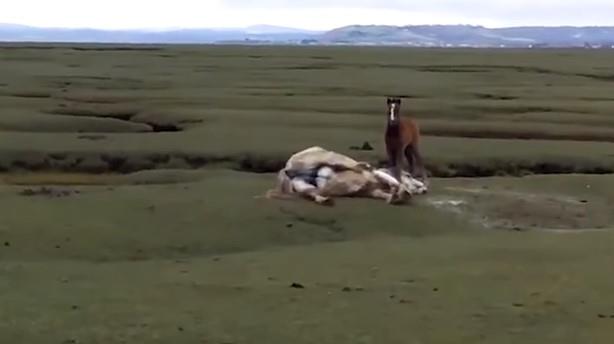 Kobili se zadnja noga zaplela u grivu i ona nikako nije mogla da se oslobodi. Njen ždrebac je sve vreme trčao oko nje, pokušavajući da nekako dozove pomoć.