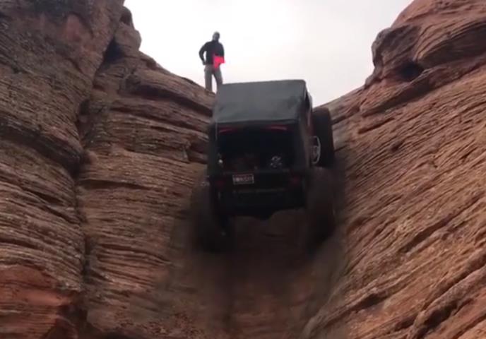 Na snimku se vidi kako se terenac penje pod uglom od blizu 90 stepeni i bez problema savladava uspon. Zaista zadivljujuće.