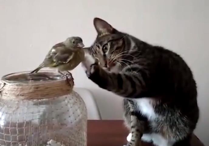 Ne samo da nije pojela ptičicu, već je uživala u tome dok ju je mazila šapicom.