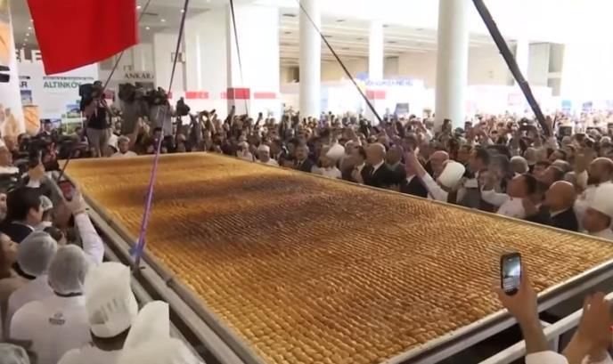 Grupa poslastičara u Turskoj napravila je najveću baklavu na svetu, tešku više od pola tone, čime je oboren svetski rekord, uz "slatku poruku svetu - ne pričajte o sukobima, već o slatkišima".
