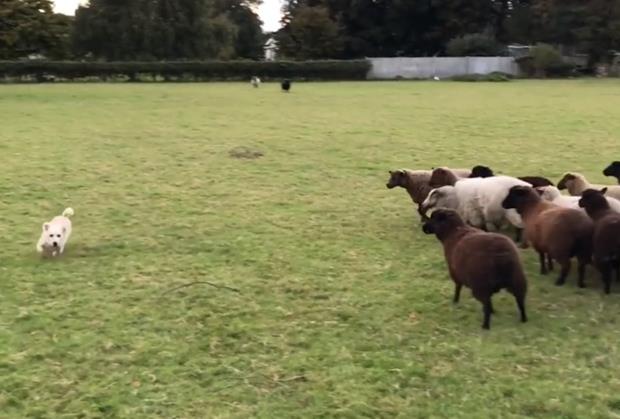 Kao i uvek i tog dana ovce su mirno pasle. Međutim ovog puta “neko” je odlučio da im pokvari ručak. Da li mu je bilo dosadno pa je želeo malo zabave ili je nešto sasvim drugo u pitanju, mali terijer je počeo da laje na njih. I gle čuda! Desilo se nešto neočekivano. Ovce su počele svom snagom da ga jure, kako bi se rešile male napasti. Pas je urnebesno bežao ni ne sluteći šta ga je snašlo.