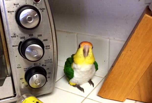 Kada je vlasnik jednog papagaja došao kući i sam se iznenadio reakciji svog pernatog ljubimca. Papagaj je sav presrećan počeo da igra i peva. U jednom trenutku kada je čuo zvuk mikrotalasne rerne je zastao sav u čudu i počeo radoznalo da obilazi oko nje. Nije razumeo neobične zvuke koji dopiru do njega.
