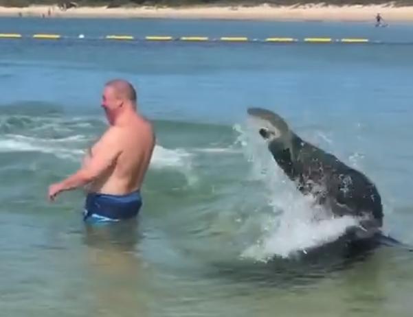 Kupači u australijskom gradiću Naruma bili su zatečeni kada je jedna foka uletela među njih i mahnito počela da juri cik-cak između njih.