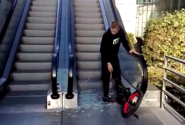 Nije ovaj mlađahni Francuz imao ništa protiv pokretnih stepenica. Štaviše, hteo je da ih iskoristi za svoju akrobaciju na monociklu.