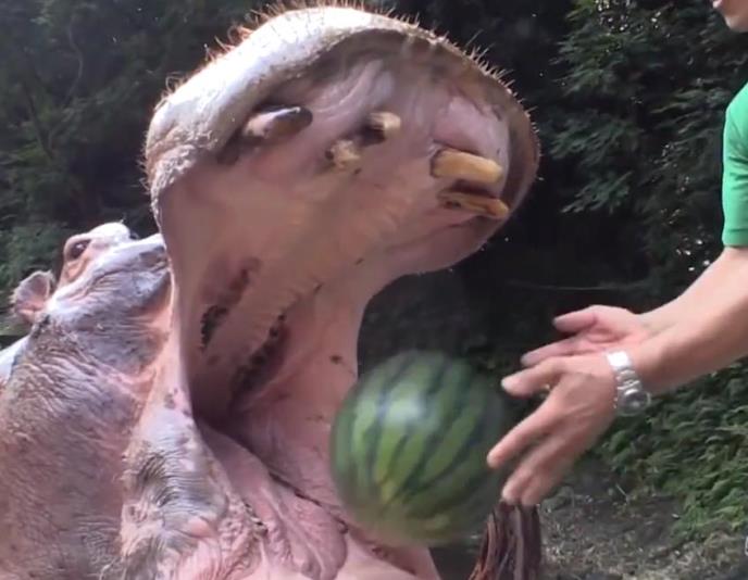 (VIDEO) ODE LUBENICA U JEDNOM ZALOGAJU! Ovaj div ih krcka kao da su kikiriki!