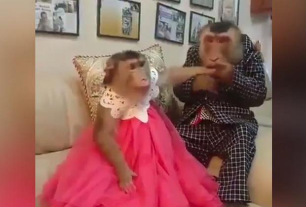 Ali majmuna i majmunicu obučene u svečana odela, ubeđeni smo da do sada niste videli.