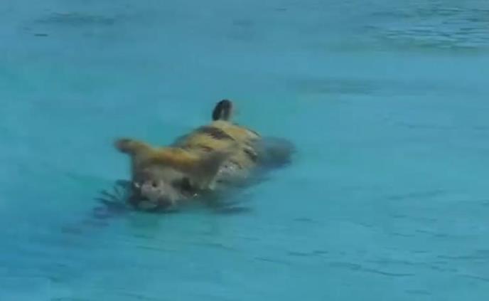 Ali za one koji vole egzotična letovanja, za šta je nekada potrebno i nekoliko hiljada evra, prelep prizor nam stiže sa dalekih Bahama, gde se nalazi Svinjska plaža ili Svinjsko ostrvo.