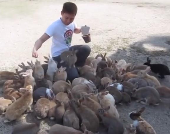 Reč je o Okunošimi, japanskom ostrvu, koje se nalazi u blizini grada Takehara. Zovu ga "zečijim" jer na njemu živi na stotine tih životinjica koje se potpuno slobodno kreću. Ipak, iza današnjeg blagostanja kunića na ostrvu krije se strašna prošlost. Između dva svetska rata japanska vojska je ovde imala fabriku bojnih otrova, a kunići su dovedeni za sprovođenje surovih eksperimenata. Po završetku II svetskog rata, fabrika je napuštena, a radnici su pustili životinje na slobodu. Od tada, kunićima je prepušteno da rade šta žele.