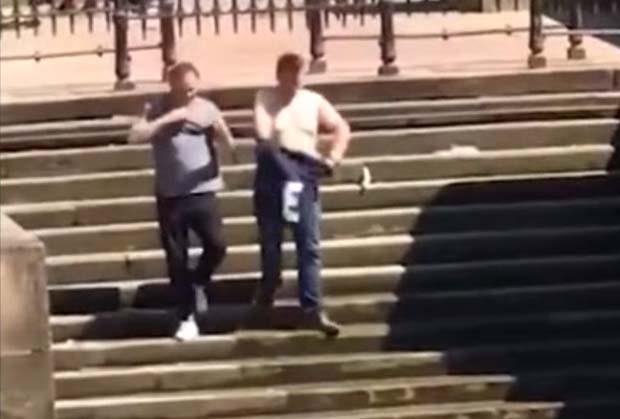 Hteo je da umoči stopala. Podržavalo ga je društvo u toj ideji. “Šmekerski” je krenuo niz stepenice. I onda....blam! Pogledajte kakav!