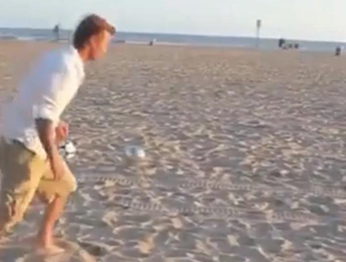 Na snimku Bekam je na plaži i opušteno pijucka piće. Autor snimka ga pita da li može da pogodi loptom kantu koja se nalazi udaljena sigurno 50-ak metara. Dejvid mu samouvereno odgovara "naravno", na šta ga ovaj pita "a da li bi sa tri lopte mogao da pogodi tri kante?" Čuveni fudbaler mu uzvraća "pa, to je još lakše", a zatim jednu za drugom šalje tačno gde je i najavio - posred rupe.