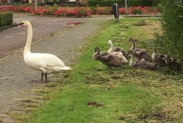Za labudiće je taj izlazak nešto novo, ali zato su roditelji tu da ih štite od nepredviđenih okolnosti. Posebno ako polako šetaju preko pešačkog prelaza, dok nestrpljivi vozači sede za volanom i čekaju.
