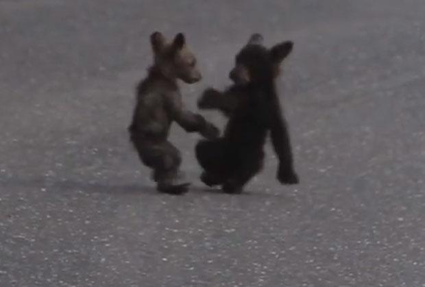 Dvoje turista su bili veoma iznenađeni ali i presrećni kada su u Koloradu u dolini Heč Heči nasred puta videli dva medvedića kako se rvu.