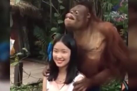 Ovog puta majmun pozirajući sa nepoznatom devojkom pred fotoaparatom, imitira ljude u takvim situacijama.