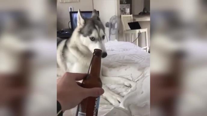 Ovaj čovek uporno prinosi flašu sa alkoholnim pićem svom psu haskiju.