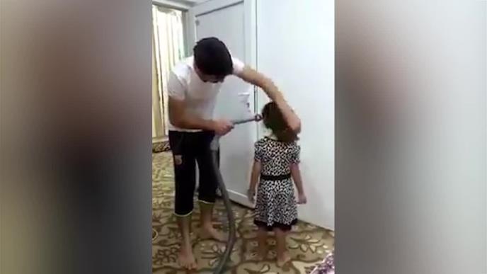 USISIVAČ UMESTO FENA! Da li je ovo NORMALNO? Otac devojčici usisivačem pravi frizuru! (VIDEO)