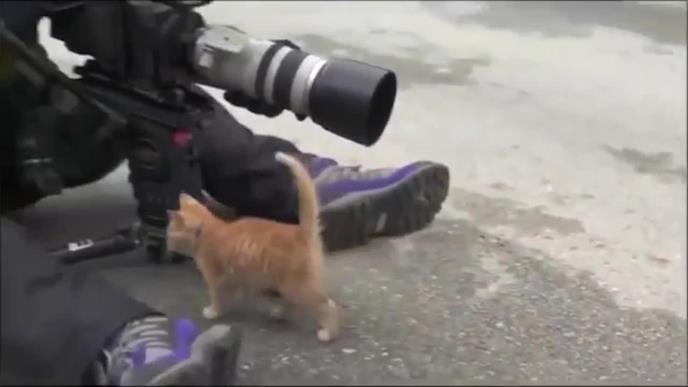Snimatelj sa video snimka koji vam donosimo, našao se u čudu kada mu je usred važnog radnog zadatka ušetala mala maca.