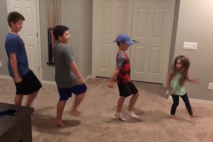 Kada je počela svoju tačku devojčica sa snimka nije ni slutila da će dobiti pomoć sa strane. Počela je da pleše uz muziku, pa je uskočio stariji brat.