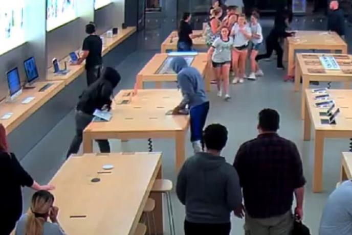 Izuzetno drska krađa dogodila se u Eplovoj prodavnici punoj kupaca usred prometnog tržnog centra u američkom gradu Frezno.