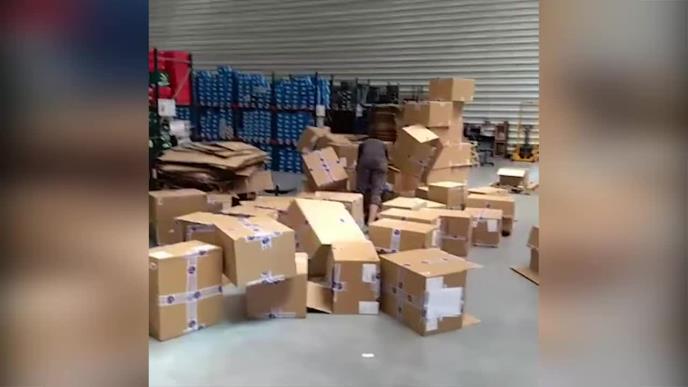 Ili je nekima je stvarno dosadno na poslu ili su samo „otkačeni“! Jednom takvom „otkačenom“ je dozlogrdilo da radi, pa je odlučio da se „kugla“. Za to su mu bile potrebne kutije i to veliki broj njih i njegova glava! Doduše, radi sopstvene sigurnosti stavio je kacigu.