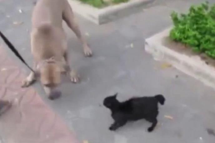 Kada je spazio dva mačeta pored staze kojom je šetao, veliki pas se zaleteo kao njima i odmah ih zgrabio. Ko zna šta bi se sa njima desilo da njihova majka nije bila u blizini.