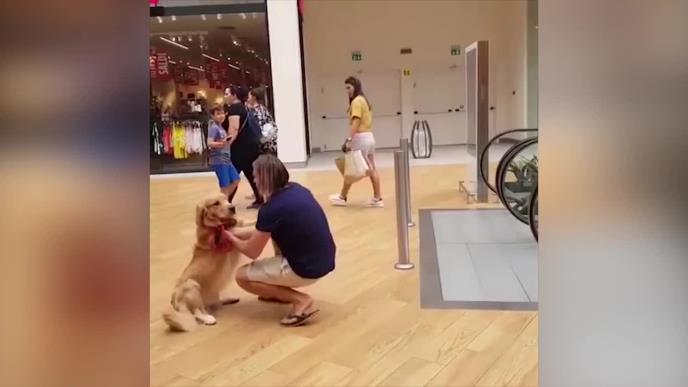 ZLATNI RETRIVER SE TOLIKO UPLAŠIO POKRETNIH STEPENICA! Njegov gazda je morao da uradi ovo! (VIDEO)