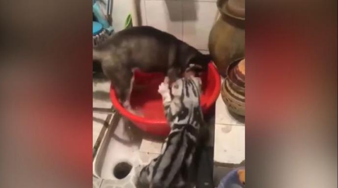 Prenosimo vam samo deo jedne situacije u kojoj mace dominiraju nad kucama iupućuju im vaspitne mere.