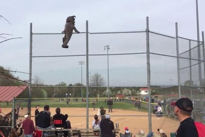 Tako se maskirani buldog uspentrao na visoku žičanu ogradu delom da bi zabavio publiku, a delom da bi podržao igrače bejzbol kluba čija je maskota. Iako su i gledaoci i igrači bili zatečeni tim potezom, maskirani zabavljač je krenuo da preskoči ogradu i spusti se na teren. Tada se spetljao i dobrano tresnuo o zemlju.