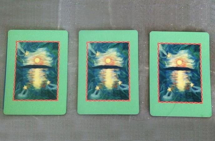 Pred vama su tri grupe karata. U svakoj se nalazi po jedna velika arkana iz tarota, jedna karta iz Osho Zen Tarota i jedna poruka duhovnih vodiča.