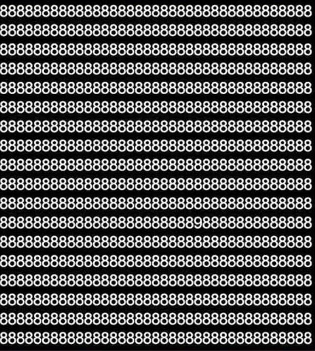 Ovde imate sliku na kojoj se nalaze osmice. Ali, među njima je sakrivena jedna devetke. Ako uspete da je nađete za manje od minut, VI STE GENIJALAC!