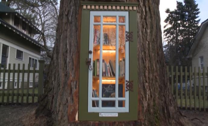 Jedna neprofitna organizacija uz samo malo mašte, dobre volje i kreativnosti, od mrtvog stabla napravila je najslađu besplatnu biblioteku u drvetu.