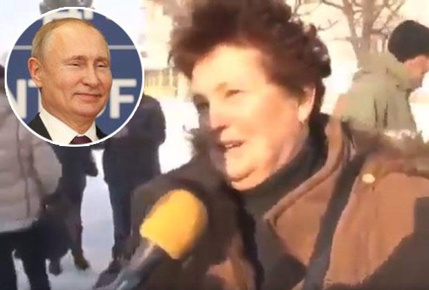 Ova gospođa očito ne može da sakrije koliko joj je ruski lider drag pa mu i tepa, a moguće je da se smao zbunila pred kamerama. U svakom slučaju, postala je nova senzacija baš kao što je čuvena baba Linda iz Pečenjevce.
