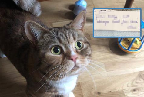 "Starica je fotkala mog mačka Čipsa, razvila fotografiju i jutros mi ovo ostavila u poštanskom sandučiću", napisala je Mijele na Tviteru.