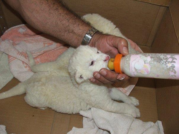 Prilazim i na prvi pogled se zaljubljujem u mala bića bele boje. Nekako sama ruka kreće da ih pomiluje i, na sopstveno iznenađenje, imam osećaj da milujem jagnje, a ne bebu belog lava.
