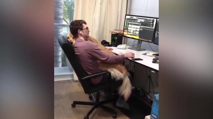 AU KOLIKA PSEĆA MAZA! Dok njegov vlasnik vredno radi za kompjuterom, on mu leži u krilu, grli ga i mazi se! (VIDEO)