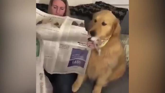 Reakcija ovog psa koji ispoljava ljubomoru dok njegova vlasnica čita dnevnu štampu će vas slatko nasmejati.
