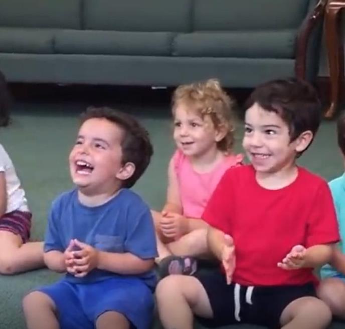 Ovo je definitivno nešto naslađe što ćete danas videti. Grupa dece u vrtiću predvođena vaspitačicom peva pesmu uz koju se tapše. Posle svake strofe vaspitačica zastane, a dečak u plavoj majici prasne u neodoljiv, zarazan smeh.