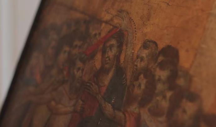 Reč je o delu Ruganje Hristu (Christ Mocked), čiji je autor Čimabue, najpoznatiji firentinski slikar sa kraja 13. i početka 14. veka.