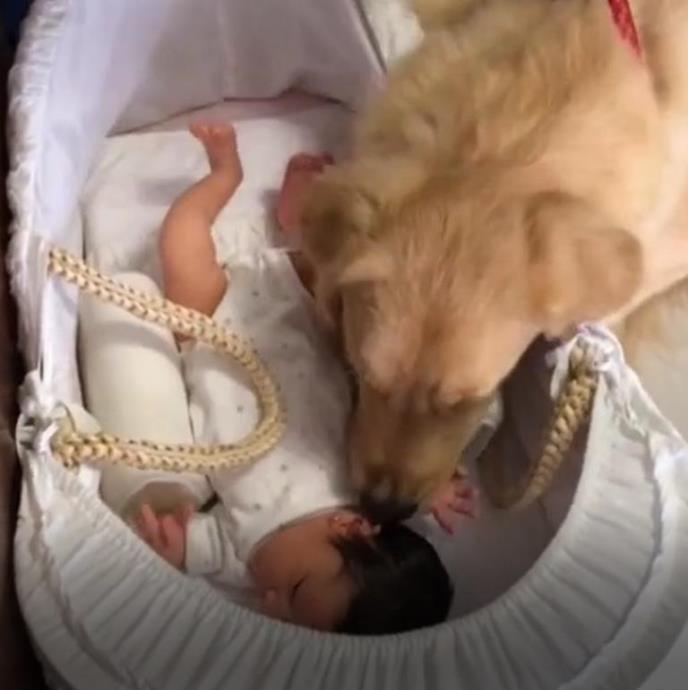 Tek rođena beba dolazi svojoj kući gde je dočekuje ravnopravni član porodice - zlatni retriver. Pas je oduševljen novom drugaricom, njuška je, gurka, i ljubi na neki svoj kereći način.