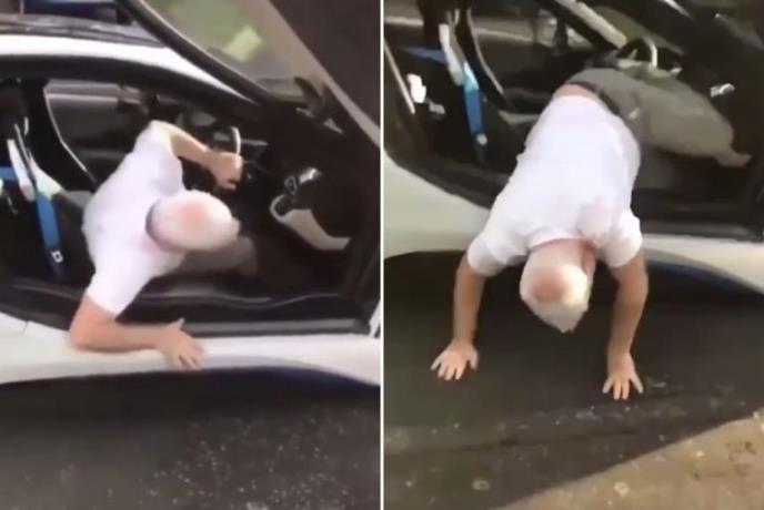 AJDE SAD IZAĐI, MAJČIN SINE! Ušao u sportski auto, ali nikako da se iskobelja! (VIDEO)