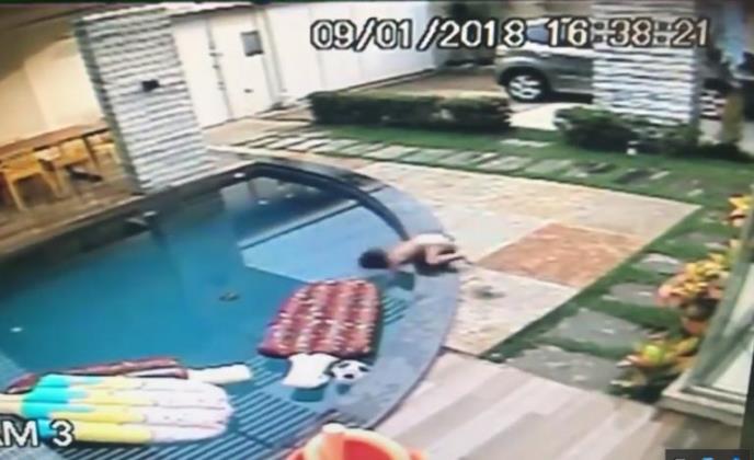 Prišao je neobezbeđenom bazenu, nagnuo se ka vodi i naglavačke upao. Ovu buku čuo je njegov sedmogodišnji rođak, poji je poput odraslog čoveka uskočio u bazen bez razmišljanja i izvukao bebu napolje.