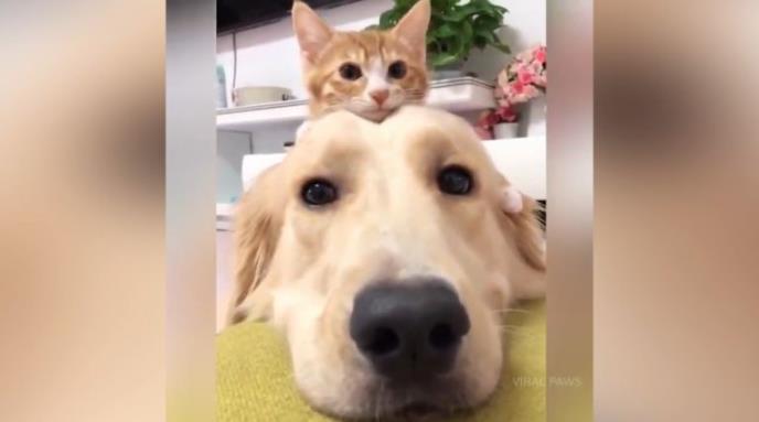Kad vidite ovog zlatnog retrivera i malu macu, istopićete se od njihove ljubavi.