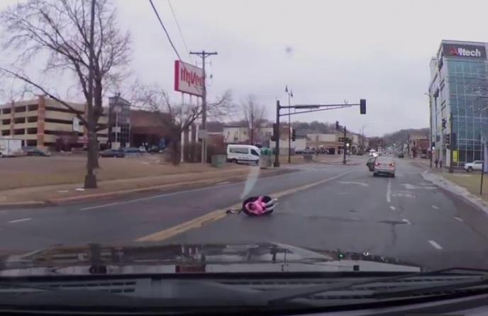 Kamera je snimila automobil kome se u krivini otvaraju zadnja leva vrata, i na ulicu ispada dete u auto sedištu. Da bi situacija bila još gora, vozač ne primećuje da u kolima nema deteta, već nastavlja vožnju.