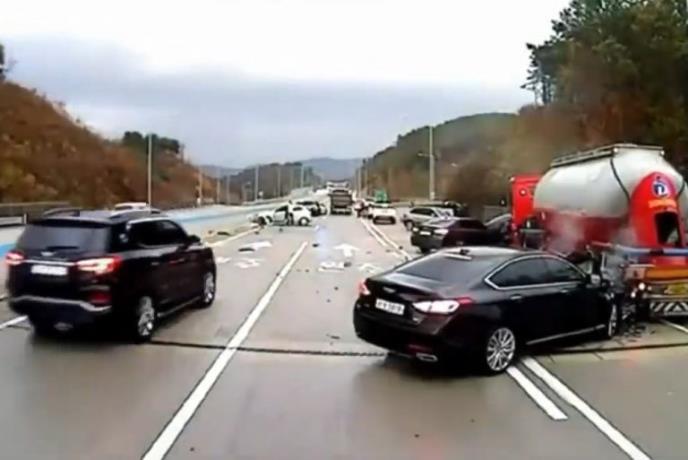Ledena kora koja se uhvatila na autoputu u Južnoj Koreji izazvala je ogromne probleme tamošnjim vozačima. Na nekim mestima ljudi su totalno gubili kontrolu nad vozilima što je dovelo do serije saobraćajnih udesa. Jedan lančani sudar zabeležen je i na ovom snimku, gde možete videti kako su vozila nekontrolisano letela na sve strane i zakucavala se u one ispred sebe. Ono što se paralelno dešavalo tokom tog masovnog "čukanja" jeste bežanje jednog vozača kamiona koji je pokušao da upozori ostale šta se dešava na drumu. Međutim, tako je doveo sebe u opasnost jer su automobili počeli da lete ka njemu.