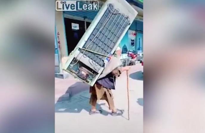 OVO NIJE MOGUĆE! Super deka, jak kao stena, na leđima nosi FRIŽIDER i šeta gradom! (VIDEO)
