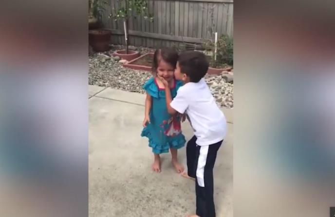 Dečak i njegova mlađa sestra igrali su košarku u dvorištu, kada je devojčica pokušala da ubaci loptu u koš, ali nije uspela, a lopta je udarila po nosiću. Ona je odmah počela da plače, a njen nežni brat potrudio se da je uteši zagraljajem i poljupcem.