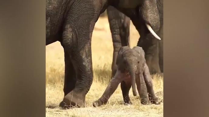 Pogledajte mladunče slona koje je tek došlo na svet i prvi put stalo na noge