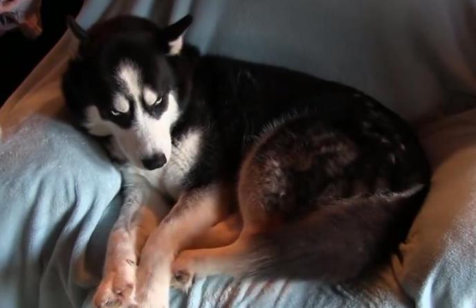 Haski po imenu Remi uživao je u fotelji kada se pojavila njegva vlasnica i naredula mu da siđe:
