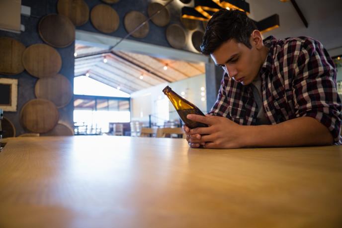 Mladić sedi na krevetu i drži ruke na glavi